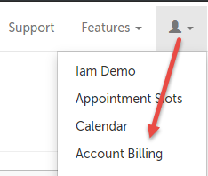 1. Click on the Profile icon in the upper right-hand corner, and select "Account Billing" from the dropdown menu.